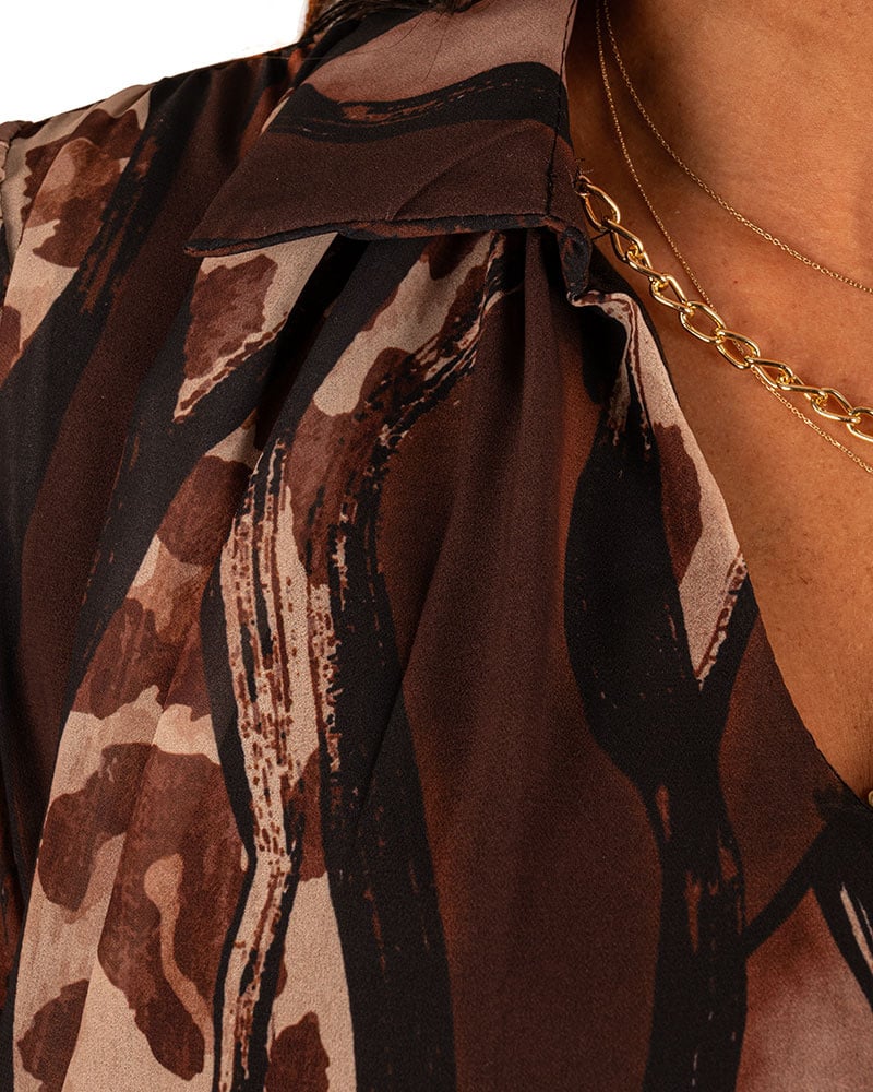 Bruin/beige print blouse ketting van Iz Naiz.