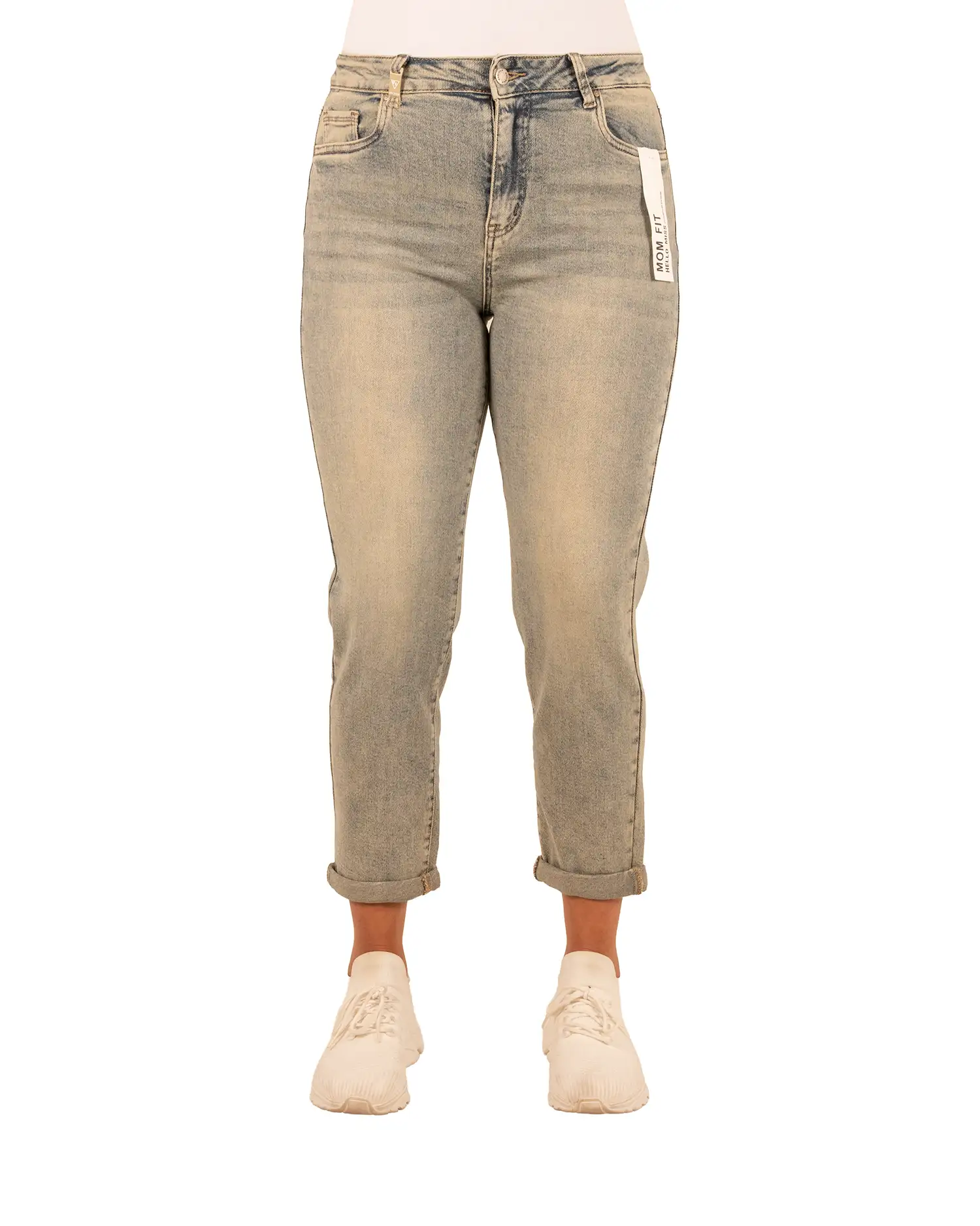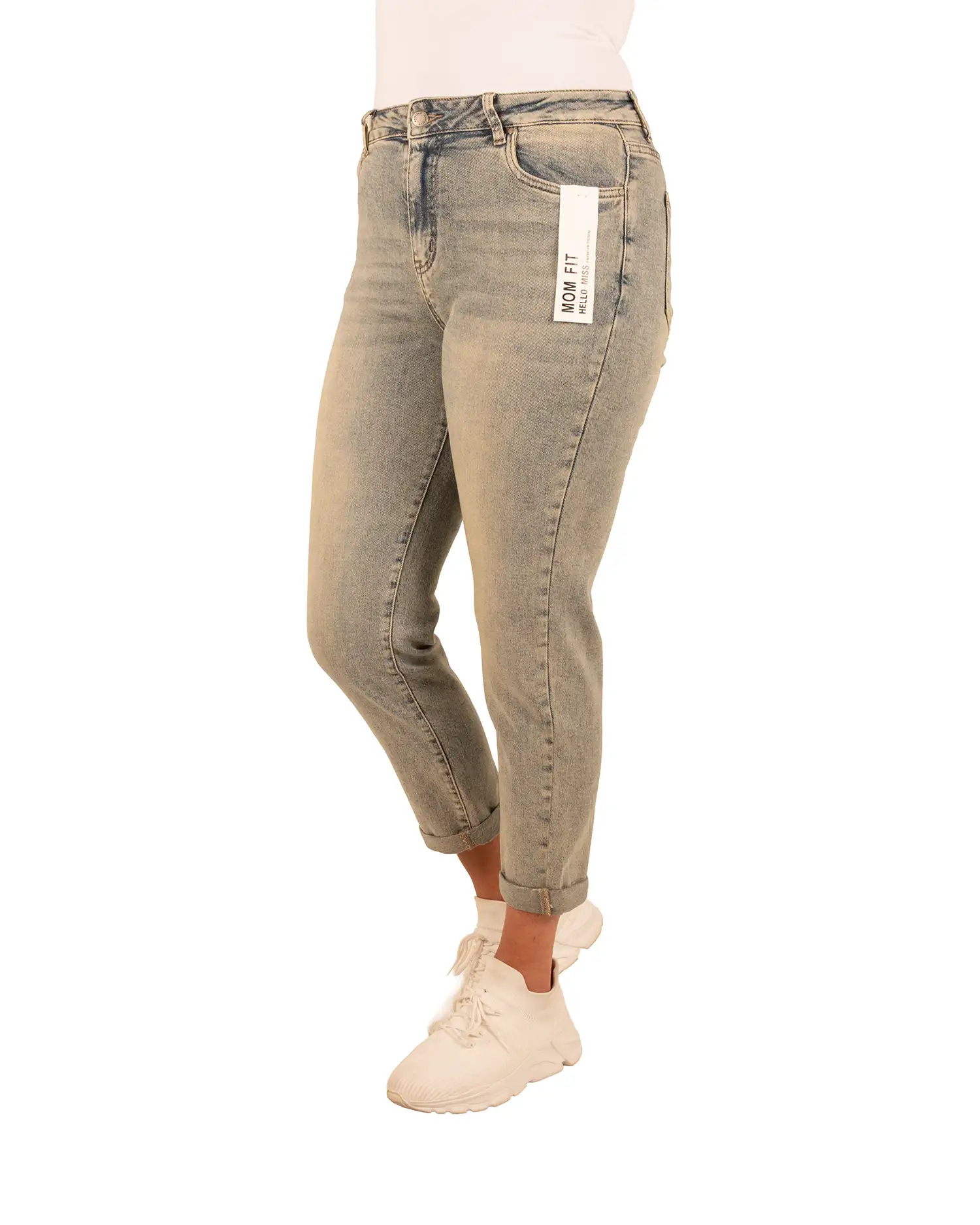 Dirty wash high waist mom jeans van Hello Miss