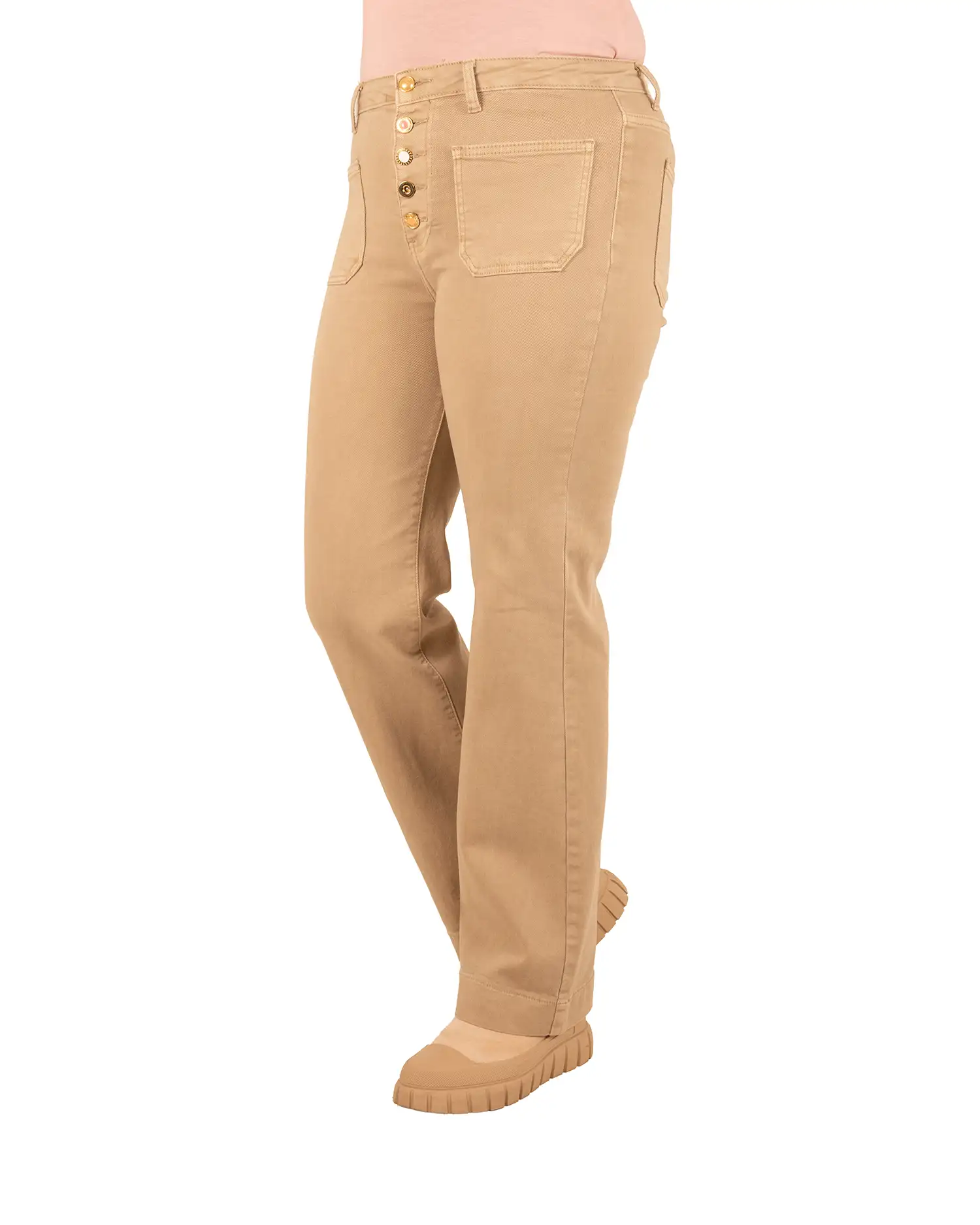 Donkerbeige wide leg jeans met knopen van Miss Bon