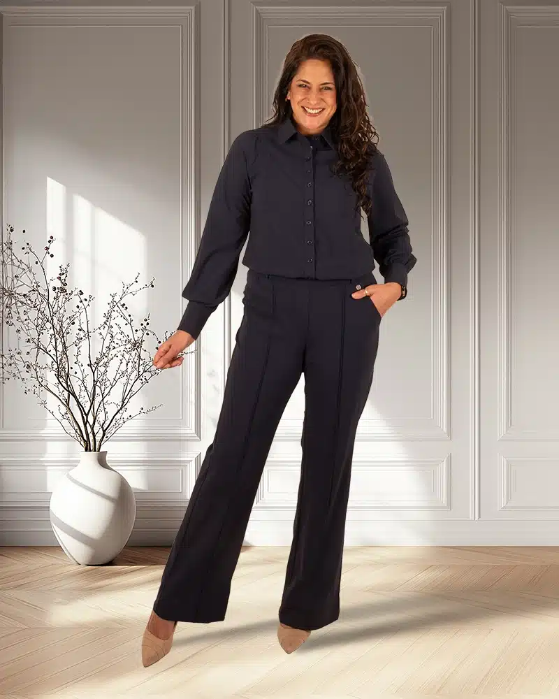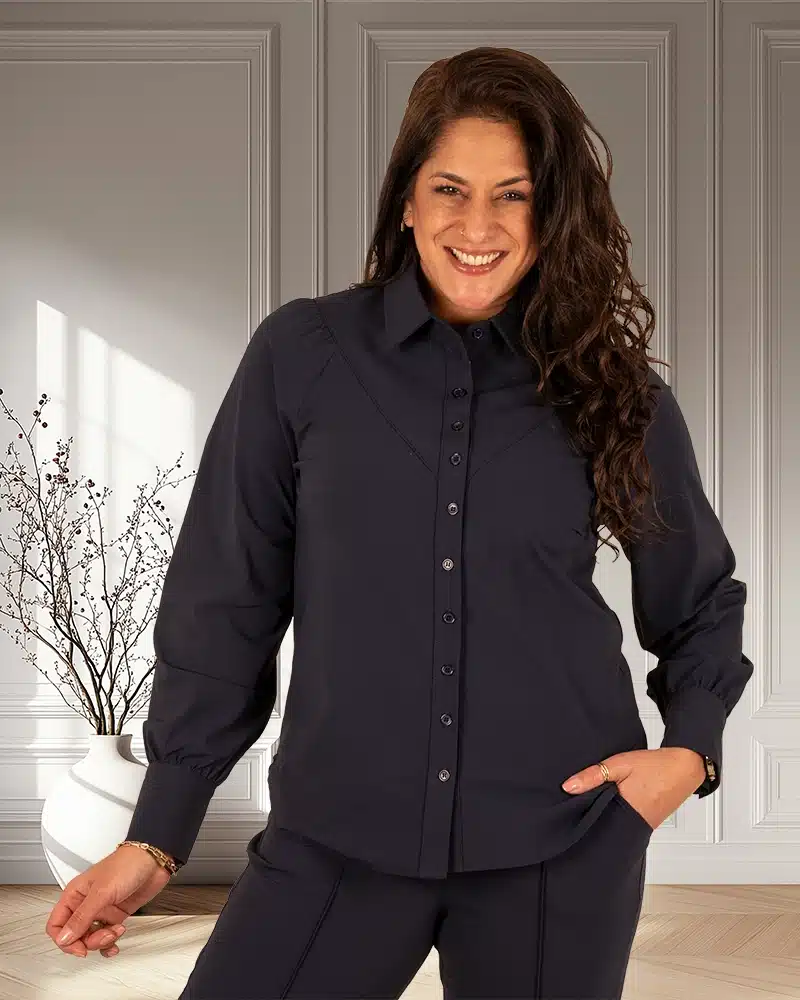 Donkerblauwe travelstof blouse van Triple Nine