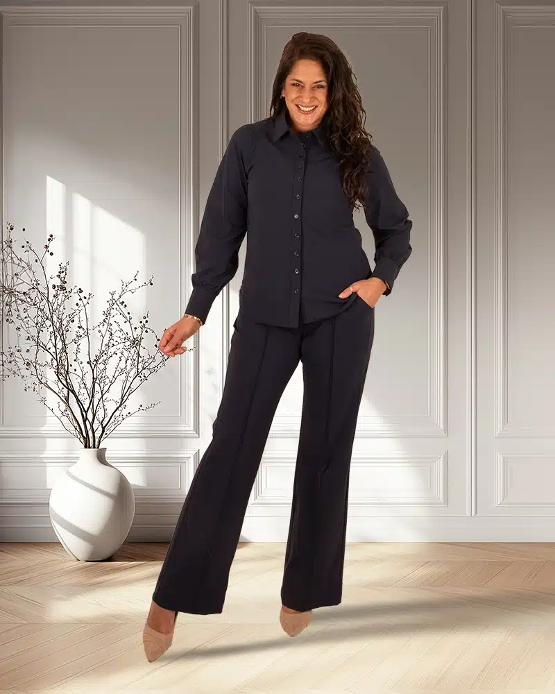 Donkerblauwe travelstof pantalon met naad van Triple Nine