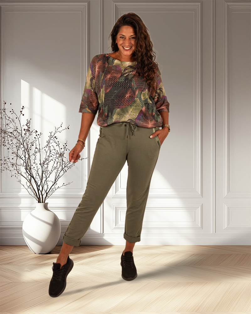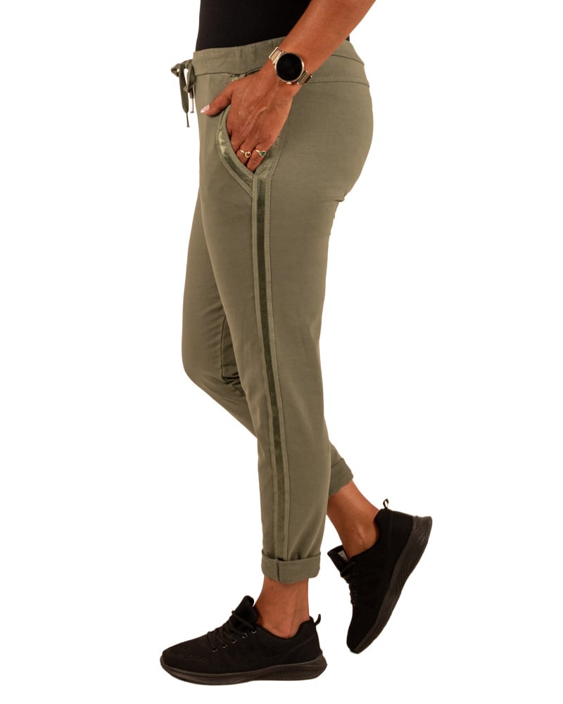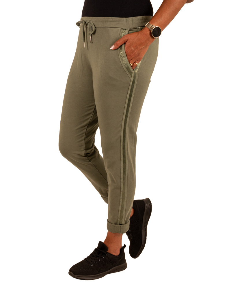 Legergroene joggingbroek met bies van Gemma Ricceri