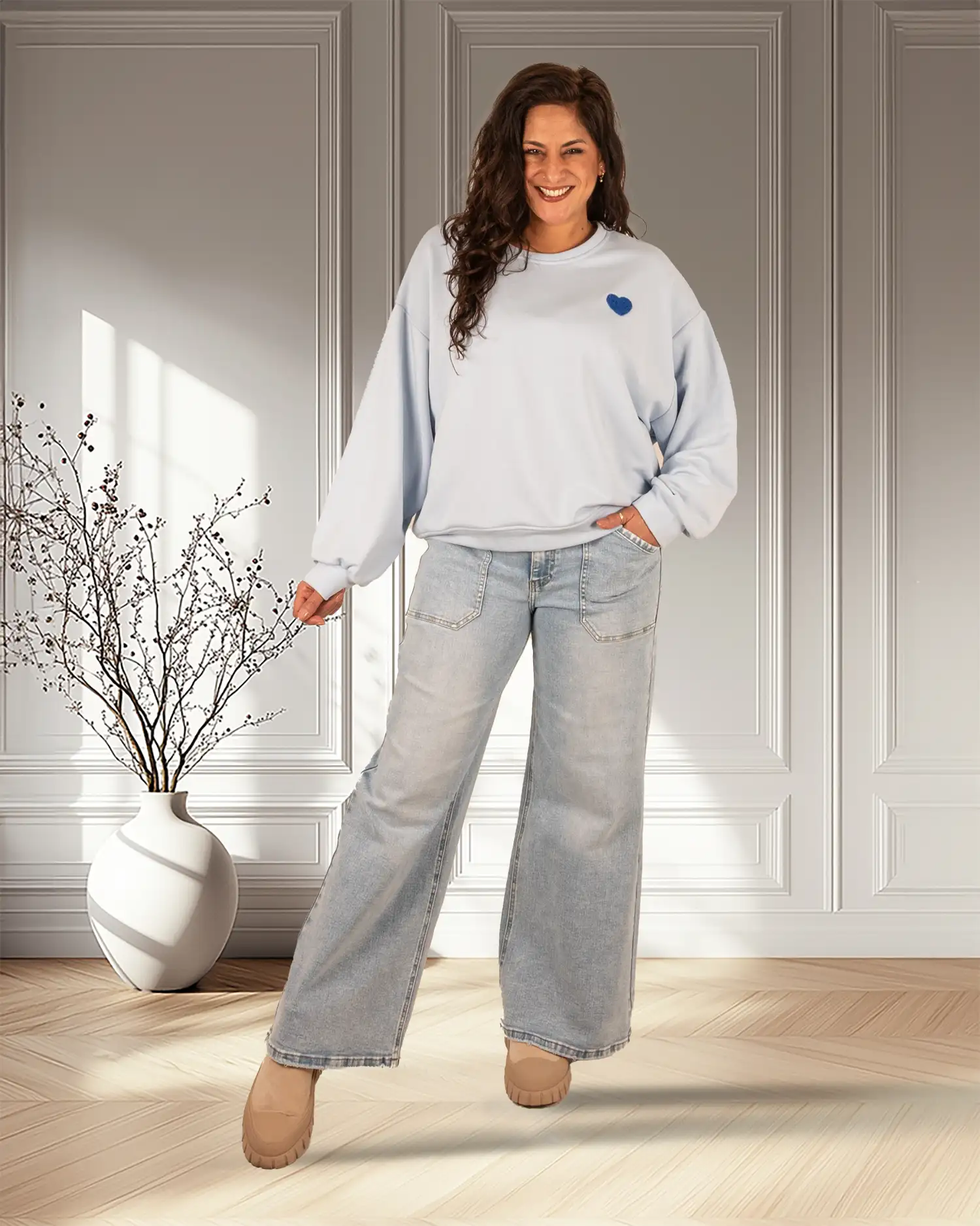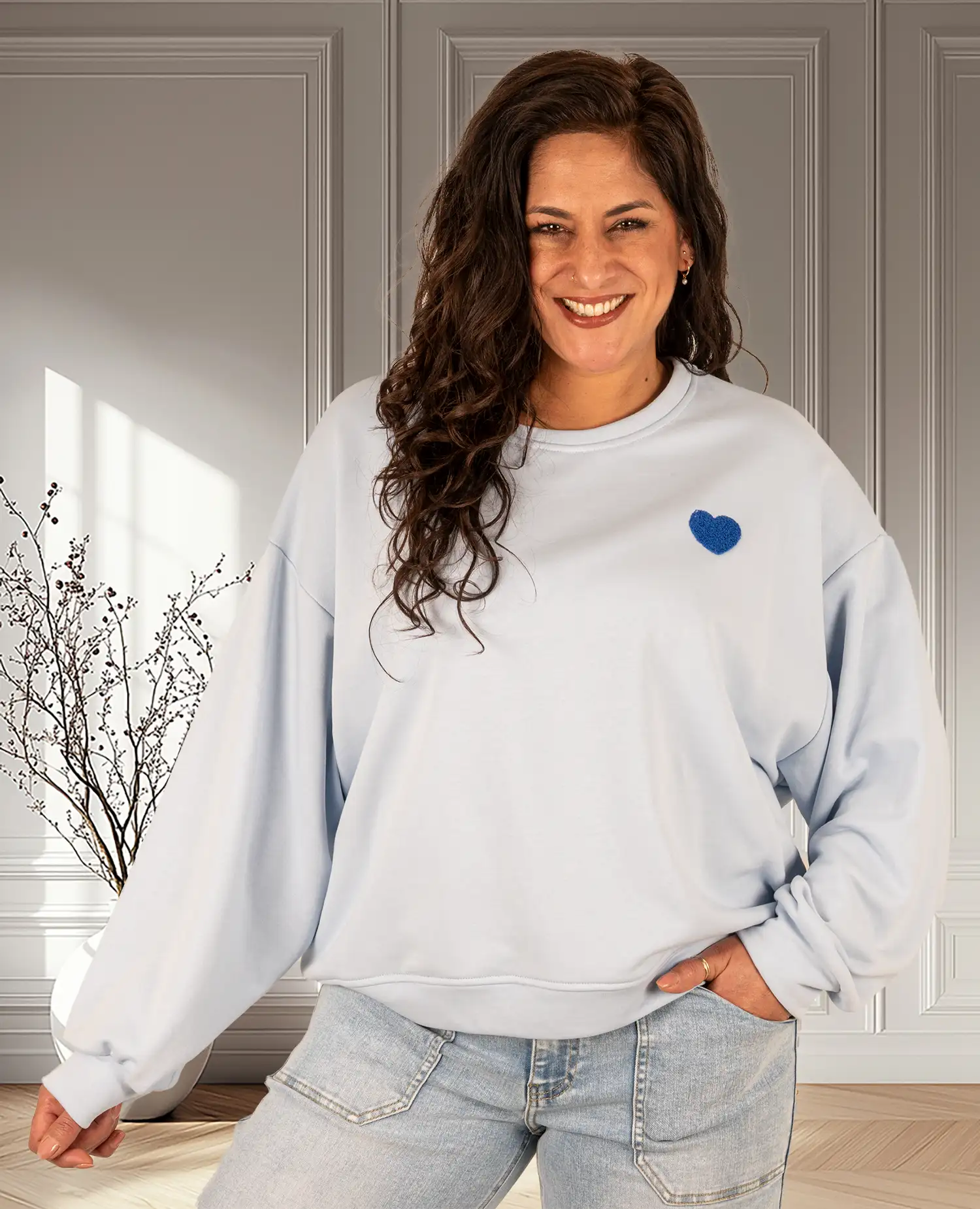 Lichtblauwe sweater “Bisous” van Mooij