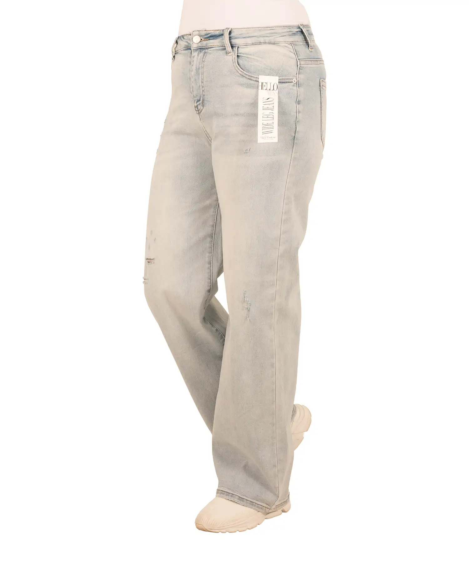 Tags: damage, hello miss, high waist, hoge taille, jeans, lichtblauw, slijtage, spijkerbroek, stretch, wassing, wide leg