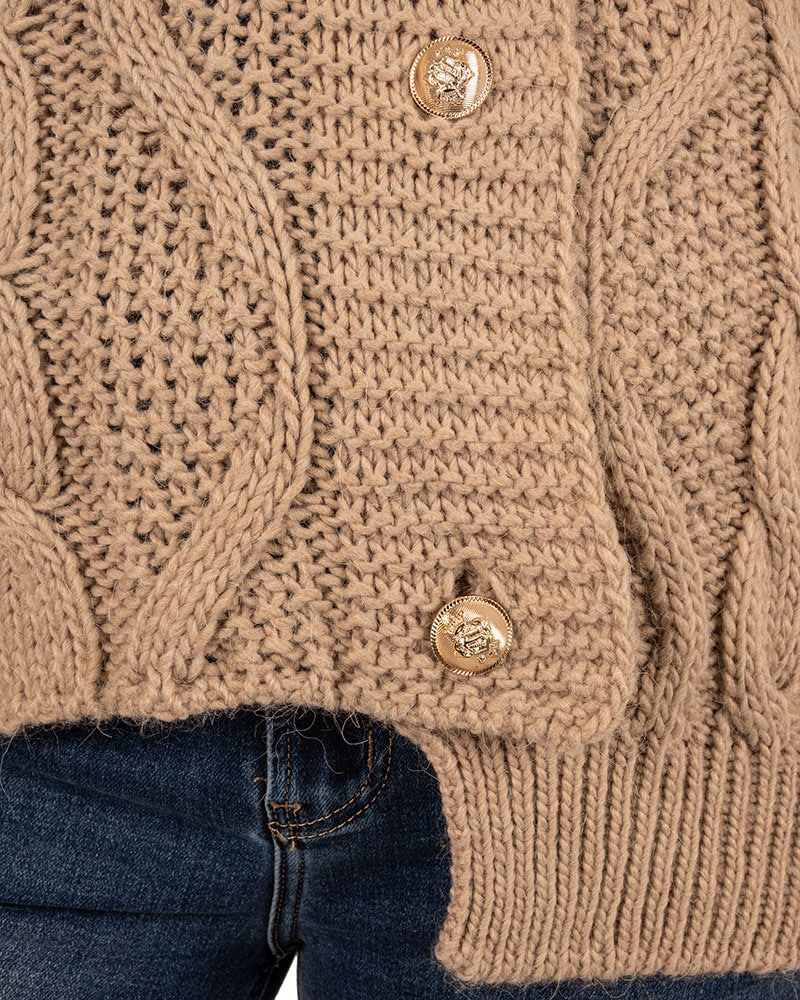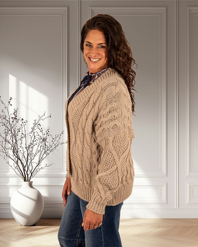 Taupe gebreid vest kabel van Dins Tricot